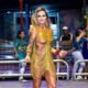 A apresentadora não se intimidou com as adversidades, fez maquiagem no escuro e seguiu para o sambódromo onde debaixo de chuva mostrou muito samba no pé...