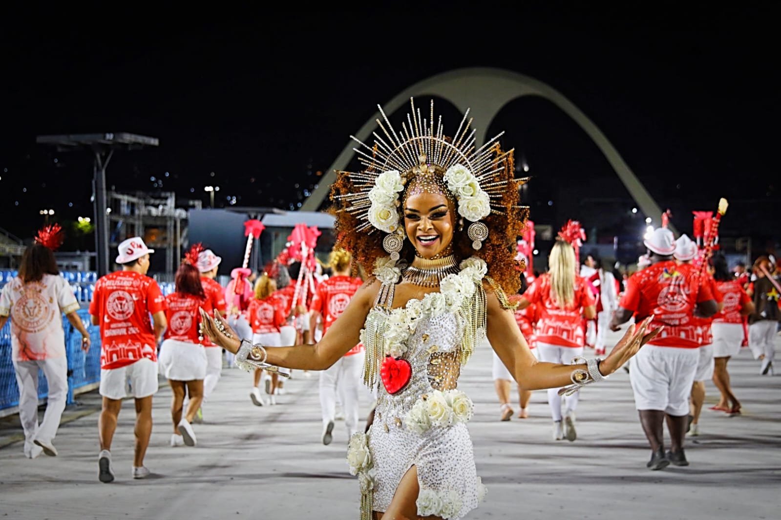 No último sábado (27), o ensaio técnico da Unidos de Padre Miguel na Marquês de Sapucaí foi marcado pela presença encantadora da musa baiana Anny Alves. Vestida com um deslumbrante traje adornado com pedras e flores brancas, a professora de dança e estudante de educação física conquistou o público presente, recebendo calorosos aplausos.
